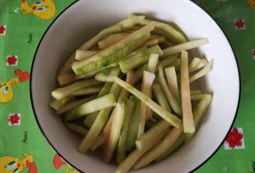 2. 条状:将毛瓜切成条状,可以用来做毛瓜炒肉片或者毛瓜炒蛋。